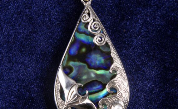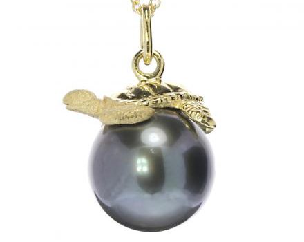 The Hawaii Collection takes hand-carved pearls, Sterling silver, mother-of-pearl and glistening rubies and combines them to create a celebration of nature's most beautiful creatures. "Become One with Nature" when you wear Galatea's Hawaii carved pearl jewelry. 14K yellow gold and 11mm hand-carved Tahitian pearl